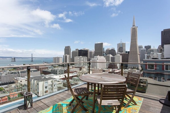 Enjoy postcard views from every window of this two level Victorian home perched atop scenic steps surrounded by gardens and bay views. Soak in the view from the rooftop hot tub while overlooking the Bay, Bay Bridge, Financial District and Coit Tower. Walk two blocks to the historic North Beach neighborhood including eateries, cafes, shopping and nightlife. Walking distance to the Financial District, Ferry Building with Farmer’s Market and sea lions at Pier 39.