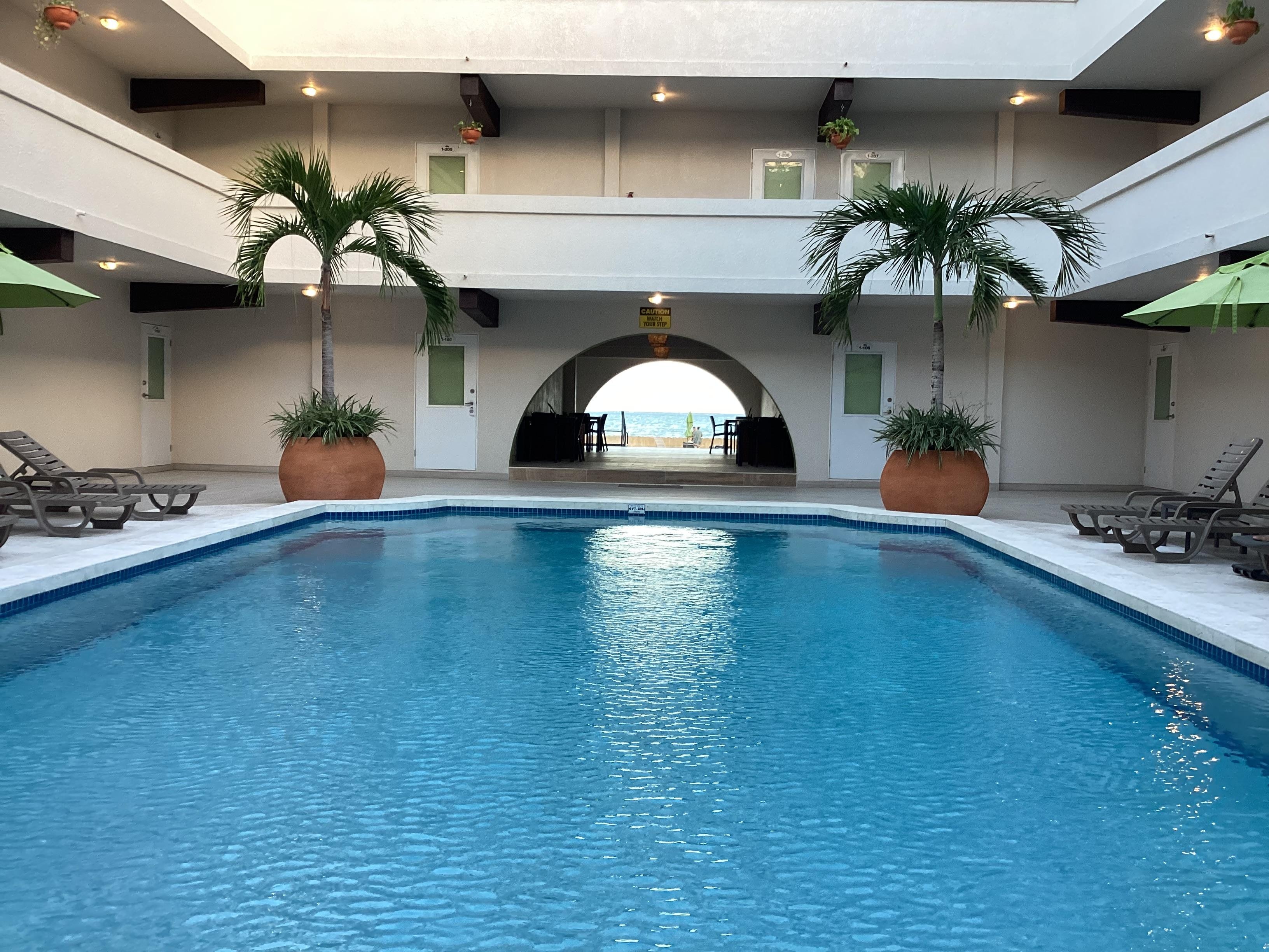 ベリーズ バリア リーフから歩いてすぐの距離にある2 つの屋外プール付きのホテル