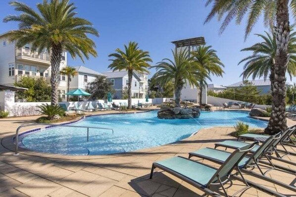 One of the NICEST and LARGEST resort-style pools on all of 30A! Not to mention the MASSIVE hot tub, fire pit, grilling area with TVs, lookout tower and LESS THAN 0.7 MILES TO THE BEACH ACCESS!