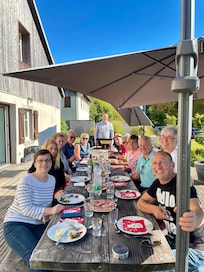 J’ai loué pour fêter mes 60 ans. Nous étions 12 adultes. Le nombre optimal pour que chaque couple et les deux célibataires aient leur propre chambre.La cuisine est équipée avec tout le matériel nécessaire pour faire à manger pendant le séjour. La pièce principale est suffisamment spacieuse pour permettre d’avoir un salon pour tout le monde ensemble et une grande table pour tous. Idem pour l’extérieur avec le salon de jardin et l’immense table en bois qui nous a permis de tous nous réunir pour manger la raclette à la Valaisanne.Le coin Wellness est également très cosy avec son jacuzzi et le sauna. Bref tout était présent pour passer un weekend inoubliable.Un grand merci à Marie-Ange pour son accueil et les présentations de toutes les fonctionnalités du Chalet.On reviendra!