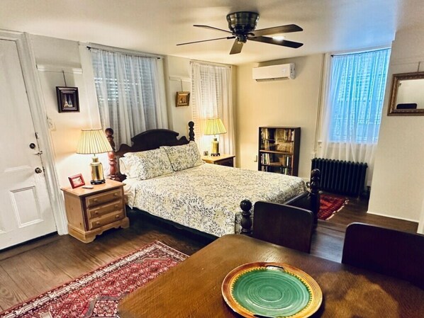 The gardens and exterior of the home are other worldly, like stepping back in time. All outdoor space is shared with several other apartments in the mansion. Each apartment has its own private entrance. You have a very spacious screened in porch including an outdoor dining table and sofa that is private to this apartment. Parking is free and easy on the street at this location and the main downtown grocery store (Kroger) is less than a block away.