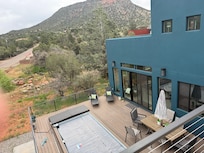 Located in Sedona in the Bell Rock Area, enjoy what this 3-bedroom amazing house has to offer. This luxe property features 2 king bed En Suites and 2 queen beds in open loft, perfect for a relaxing and fabulous stay. With amenities like heated or chilled pool, spa, Infrared sauna, steam shower, soaking tub, outdoor shower, StarlinkWiFi, a washing machine, and AC. Stocked with all necessities so guests can relax and unwind in this new modern home. The 4 bathrooms come equipped with a bathtub, shower, and bidet for added comfort. Rooftop deck with firepit and Red Rock Views make your sunsets unforgettable! Fun Outdoor Game Room with Smart TV in the shade with beverage fridge and plenty of seating. You're sure to make fantastic memories with a stay at our heavenly place.