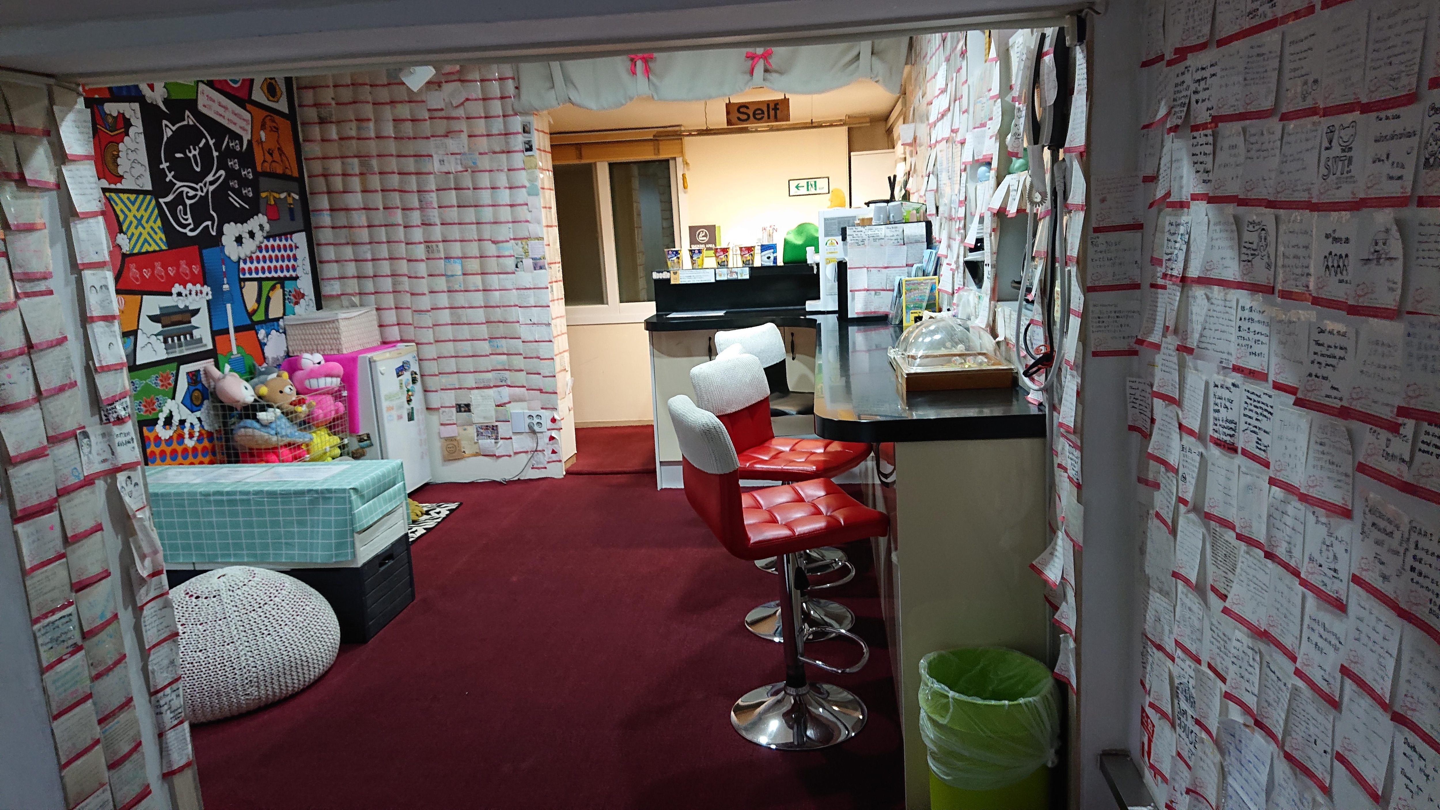 ソウルのショッピングセンターに直結した場所に位置するレストラン付きの大人限定のホステル