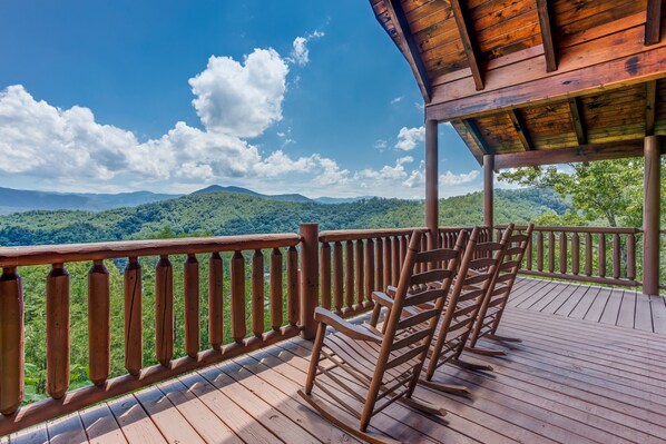 Experience a luxury getaway at the breathtaking Endless View cabin! This magnificent 4-bedroom retreat boasts an unparalleled mountain vista that will leave you in awe. Whether you're inside or outdoors, the panoramic views will take your breath away. Step onto the covered porch and enter the open, vaulted living room, where a stone gas fireplace and Led Tv create a cozy ambiance. The custom kitchen, complete with granite counters, stainless appliances, and a breakfast bar, offers a gourmet experience when dining in, no matter what time of day. On the main floor, you'll find a king bedroom that exudes elegance. Indulge in the spa-like bath, featuring stunning stone walls, a jacuzzi, and a separate shower. The luxury continues downstairs, where an oversized game room awaits. Enjoy endless hours of family fun with a multigame arcade and a pool table. Ascending to the upper level, you'll discover a king master suite that occupies its own level of the home. With its own small loft, full bath, and a relaxing jacuzzi, this private sanctuary provides the perfect retreat. Spread across three levels of true mountain living, Endless View ensures that everyone has ample space to relax and unwind. This exceptional cabin is situated within Honeysuckle Resort in Wears Valley, offering an array of amenities for your enjoyment. Take a refreshing dip in the community swimming pool or let the little ones splash in the kiddie pool. Indulge in a delicious meal at the covered dining area or savor the convenience of a full-service deli & grill. For those who enjoy fishing, the resort even boasts a pond for your catch of the day. If you're a nature enthusiast, you'll love the cabin's proximity to the Foothills Parkway and Cades Cove. Immerse yourself in the natural world as you explore these scenic locations. Additionally, the vibrant town of Pigeon Forge is just a short drive away, offering a wealth of entertainment, shopping, and dining options to make everyone happy. At Endless View, the amenities are… Endless! Book your stay now and embark on an unforgettable vacation that combines unparalleled mountain vistas, top-notch amenities, and convenient access to both nature and city attractions. Don't miss out on this incredible opportunity to create lasting memories at Endless View!