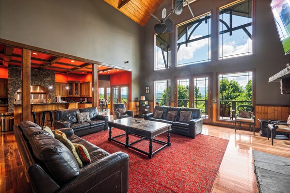 Nestled within a secure gated community, "King of the Mountain" is a stunning Sevierville residence offering unparalleled vistas of the majestic Smoky Mountains. Seamlessly blending indoor and outdoor living across three levels, immersing oneself in the surrounding nature feels effortless, ensuring cherished moments with loved ones.