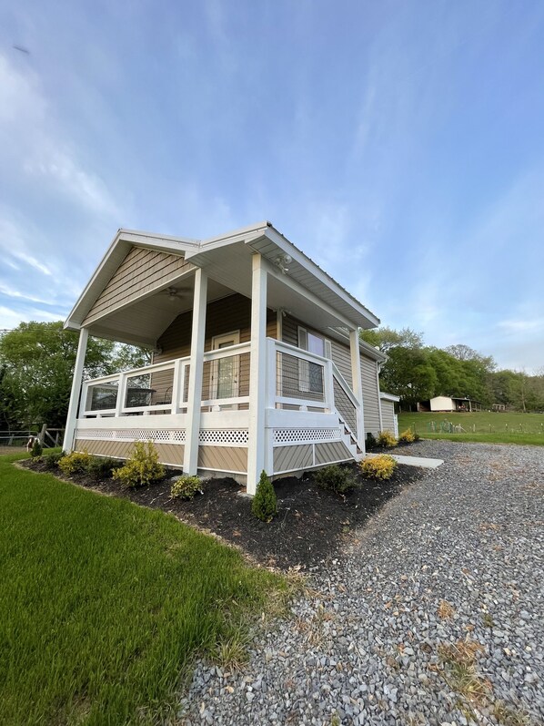 The house is a tiny house in a quiet neighbourhood built by the owner(my dad). It has a tiny kitchen but full size appliances. There is a queen bed and one bathroom with a shower, toilet, and sink. On the property there are two tiny horses. They are behind a fence so they won't be in the way. But you can pet them and they love carrots! It is convenient to the French Broad and Douglas lake, just five minutes to either. There is public access dock .1 mile away you can easily walk to. There is plenty of room to bring a boat. The boat launches for either the lake or the river are both 5 minutes away. Pigeon Forge is about 25 minutes away. The interstate is about 14 minutes away along with Smokies Stadium and Bass Pro Shop. Soaky Mountain water park is about 12 minutes away. It is very peaceful and we have pretty great sunrises and sunsets in the area. If you wanted to walk down to the public dock the sunsets are lovely. You may see the owners (my parents) from across the street come over to care for the horses twice a day, but they won't be a bother. There is a garden up there as well and the owner may be up there tending to it on occasion. And if there are vegetables he is willing to share them.