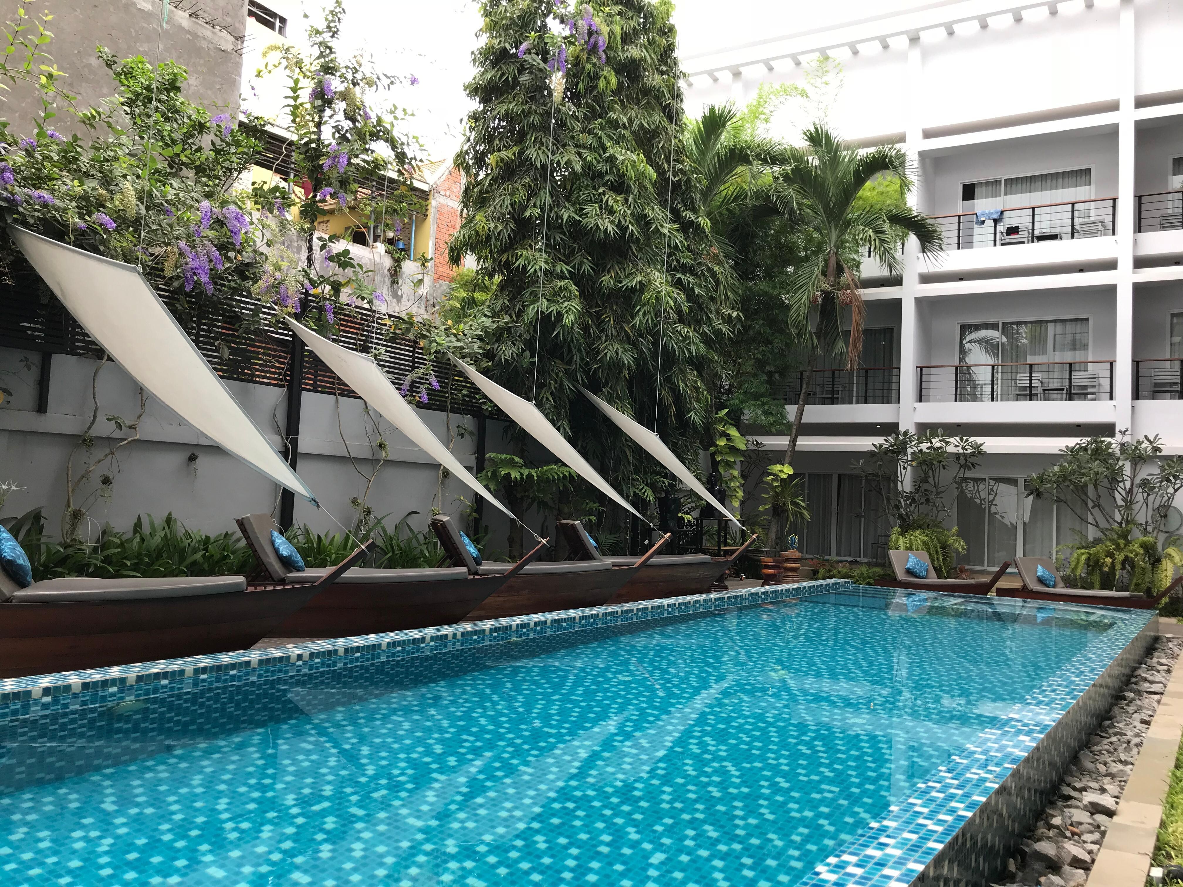 アンコールワット観光に際してホテルを探していた所、偶然見つけたこのホテル。まさかと言っては失礼ですが、シェムリアップでこのレベルのホテルに出会えるとは思っていませんでした。全体的によく設計されたホテル、清潔な部屋、きれいなプールに、日本人を満足させるだけのしっかりした水圧のシャワー。なによりオーナーのホテルへの拘りがしっかりと反映されており、非常に居心地の良い滞在となりました。