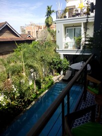 J'ai séjourné 3 nuits à Vilada Angkor Boutique et j'ai été pleinement satisfait de mon séjour. J'avais pris contact par mail pour être récupéré à l'aéroport en envoyant le numéro de mon vol, la date et l'heure. Le tuc-tuc m'attendait comme convenu avec une petite pancarte. J'avais demandé également à pouvoir m'arrêter en route pour louer un scooter, et j'ai été amené gentiment par le chauffeur du tuc-tuc jusqu'à une agence de location et le chauffeur m'a aidé dans ma discussion avec l'agence. Je suis arrivé à l'hôtel après 30 min de trajet et j'ai été très bien accueilli. Le staff est adorable et a toujours été présent pour m'aider, me renseigner et me conseiller. Concernant les chambres, celle que j'ai eue était spacieuse, claire, propre et donnait directement sur la piscine (suffisamment grande pour se baigner et nager un peu mais pas pour faire du sport). La porte qui donne sur la piscine a comme inconvénient le bruit du passage et des baigneurs de la piscine mais ça semble normal. La chambre était très propre, confortable et bien équipée. Seul bémol sur le sol en béton ciré, qui laisse une impression de se salir les pieds. Le Wi-Fi ne fonctionnait pas très bien mais un technicien était attendu ce jour. Voilà, je suis donc ravi de mon séjour dans cette hôtel. Le vrai plus, il m'est arrivé quelques mésaventures en ville et le staff a toujours été là pour moi. Un grand merci ! Pour le petit-déjeuner, il m'a été proposé un plat à base d'oeufs ( au choix), des jus de fruits en