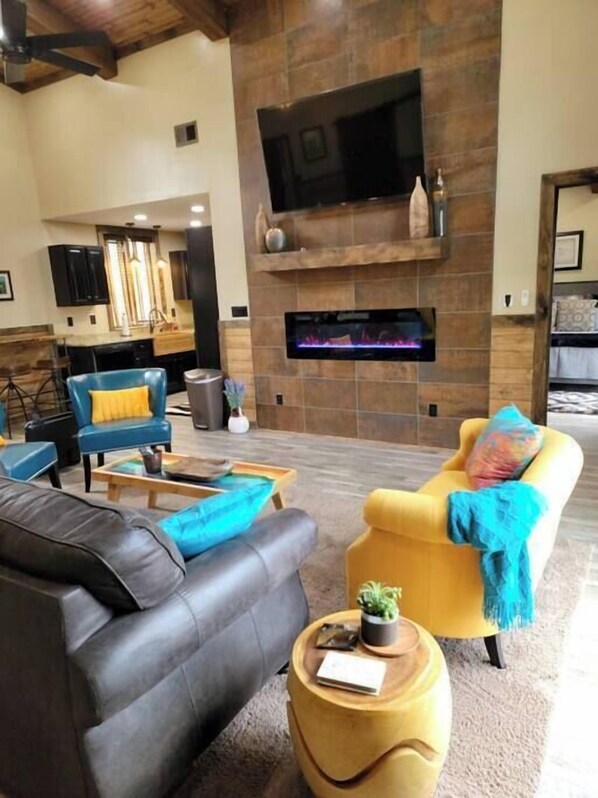 - Electric fireplace and TV for cozy evenings