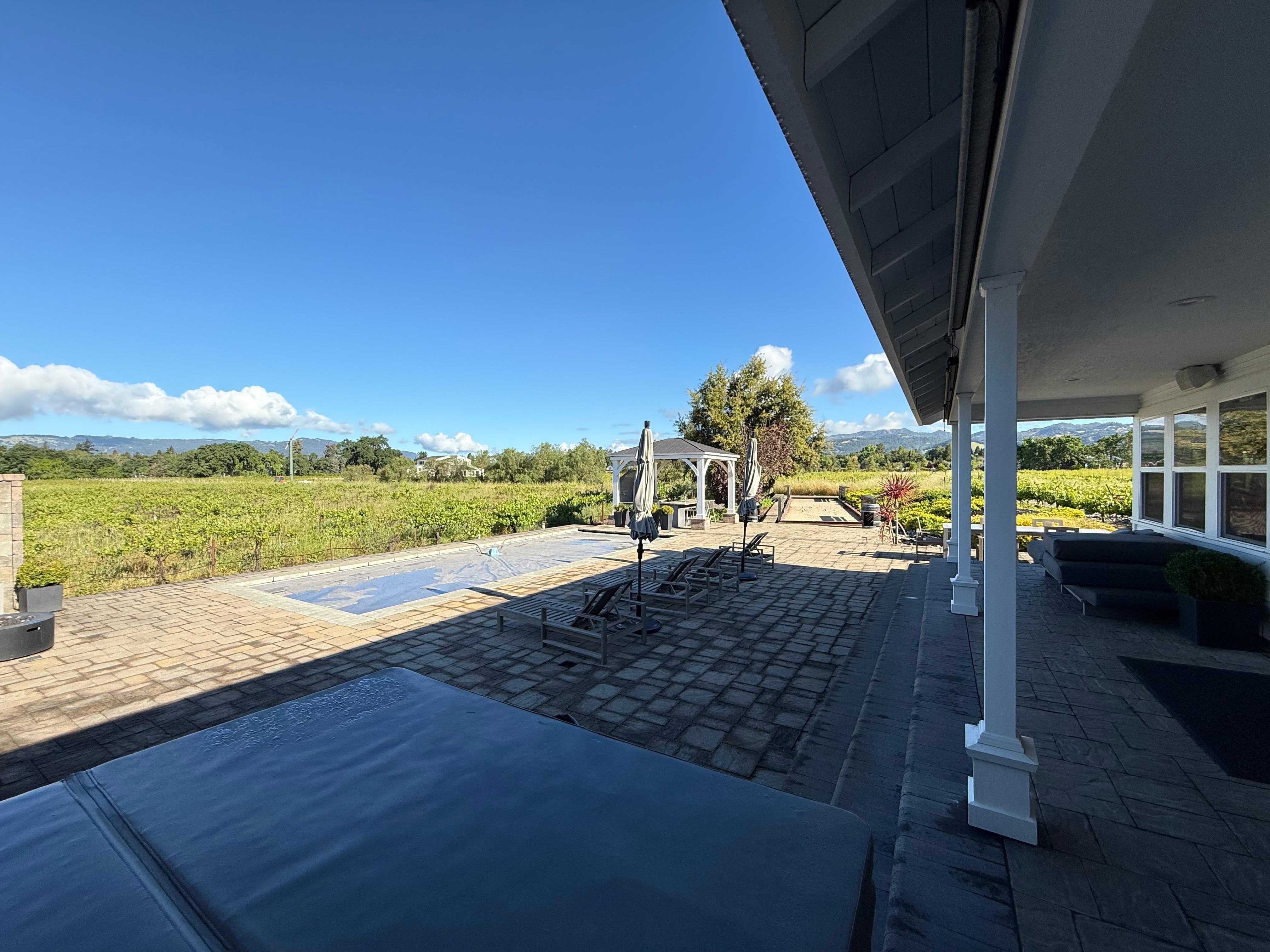 But the true magic happens outdoors. Beautifully located on a vineyard, Terra Vina boasts a private backyard retreat featuring a sparkling pool, a bubbling hot tub, and a shaded gazebo perfect for sunset dinners or morning coffee. Fire up the BBQ at the custom grill station, challenge your crew to bocce or horseshoes, and lounge poolside between tastings.
