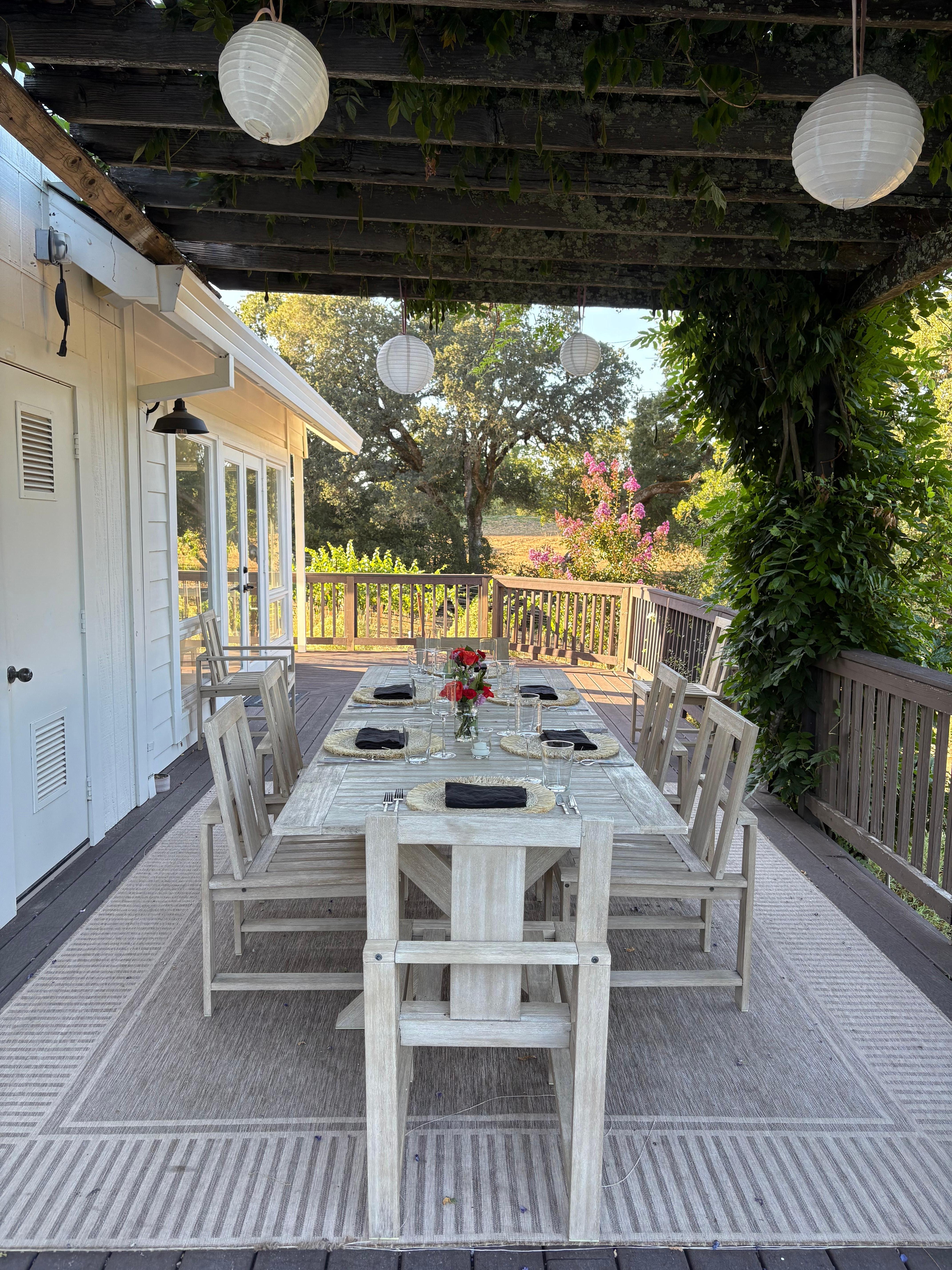 Feel free to inquire about our Concierge service, available to all guests of Wine Country Estate Management. Indulge in the culinary delights prepared by our private chefs for breakfast, lunch, or dinner. Arrange your wine tasting transportation and airport transfers with our trusted corporate partners, including Pure Luxury Limousine, Boutique Wine Tours, and Bohemian Highway Luxury Wine Tours. Treat yourself to in-house massages at the Farmhouse and IV Hydration therapy available on-site. Don't forget to inquire about our exclusive winery partnerships as well! 😊