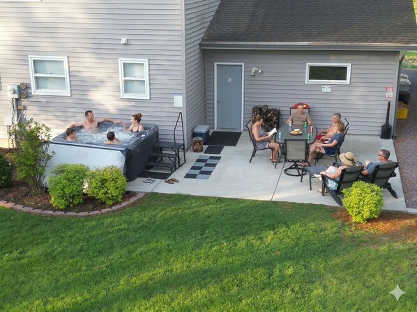 Outside: Your private oasis awaits. Soak in the hot tub after a day of exploring, or take the "local’s shortcut"—a secret gate in the backyard leads you directly to a public right-of-way, putting the square’s best eateries just a short stroll away.
