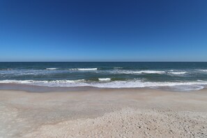 Come stay in this beautiful two bedroom, two bath, ground floor unit. Recently updated with new paint, tile flooring, and bathroom tile. There is a queen bed in the master bedroom and two twins and a Queen Bed in the guest room. There’s also a sleeper sofa in the living room. There is a private patio looking out to the dunes and ocean. Just take a few steps off of your patio to the ocean boardwalk, your toes will be in the sand in no time. There is a washer/dryer in the unit for your convenience.