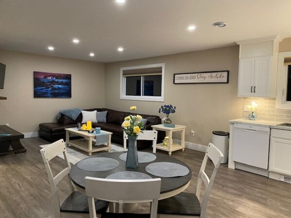 Relax with your family or friends, cook a meal, watch a movie and spend quality time together. This suite is clean and comfortable with cozy furnishings and decor. Beds are comfortable with fresh polished bedding made just for you! Enjoy!!