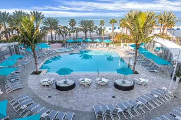Escape to Clearwater Beach, where the ocean meets luxury. This resort offers a perfect blend of comfort and relaxation, with amenities like a poolside bar, hot tub and spa, fitness center, on-site restaurants for delicious meals without leaving the property. Enjoy beach access just steps away from America's top-ranked Clearwater Beach.