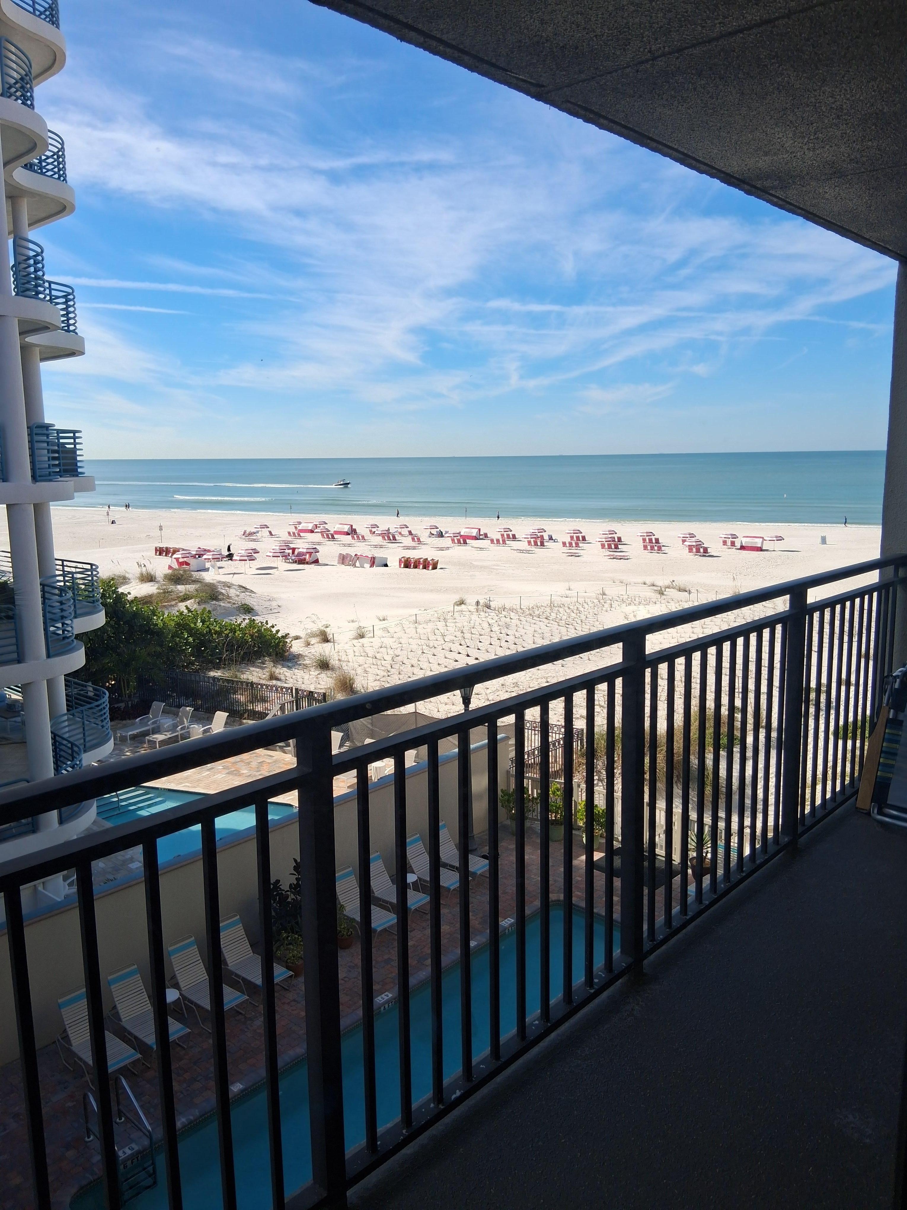 THE BEAUTIFUL GULF VIEW AWAITS YOUR ARRIVAL! Enjoy our little piece of paradise at Vistas on the Gulf #404, ideally situated directly on the breath-taking St. Pete Beach. Relax and enjoy our stunning Gulf front balcony where you will be looking directly at the sparkling blue water, pristine powdery white sand and ever changing scenery with sun bathers, dolphins, boaters, kite surfers and shell seekers. Installing a brand new stylish, almost slip proof and water resistant, vinyl plank flooring, we have adorned our newly renovated 2 bedroom, 2 bath unit with lovely and comfortable furniture, including chairs and flat screen TV's, and a king bed in the master suite with a beautifully styled Travortine private bath with step in shower The master suite also has a walk out balcony to sit, relax and watch the beautiful picturesque sun set. The second bedroom offers a newly renovated twin bunk bed layout, full over double , 4 drawer dresser, flat screen TV with quick access to the second bathroom, tub shower combination. Linens and bath towels are provided, both baths have hair dryers and there is a new stackable washer/dryer in the unit for ease and convenience. Grab beach chairs, cooler and umbrella out of the closet; take a short walk through the beautifully maintained pool and hot tub deck onto the powdery sand to find your ideal spot on the beach. Keep your car cool in the reserved undercover parking spot. While vacationing in this family friendly beach town, enjoy the convenience of walking to local bar, roof top restaurants and spend an evening watching the sun set on the magnificent gulf coast. . Prefer to cook in? There are 2 gas grills available on the pool deck and our unit boasts a complete kitchen with full size refrigerator, plus stove/oven, microwave, dishwasher, dishes, glassware, accessories in the kitchen. Traveling with extended family or friends? I have 2 friends that have units in the same Vista condo!:) Please email me for information, I am happy to help you make your reservation today, the beach is calling you!