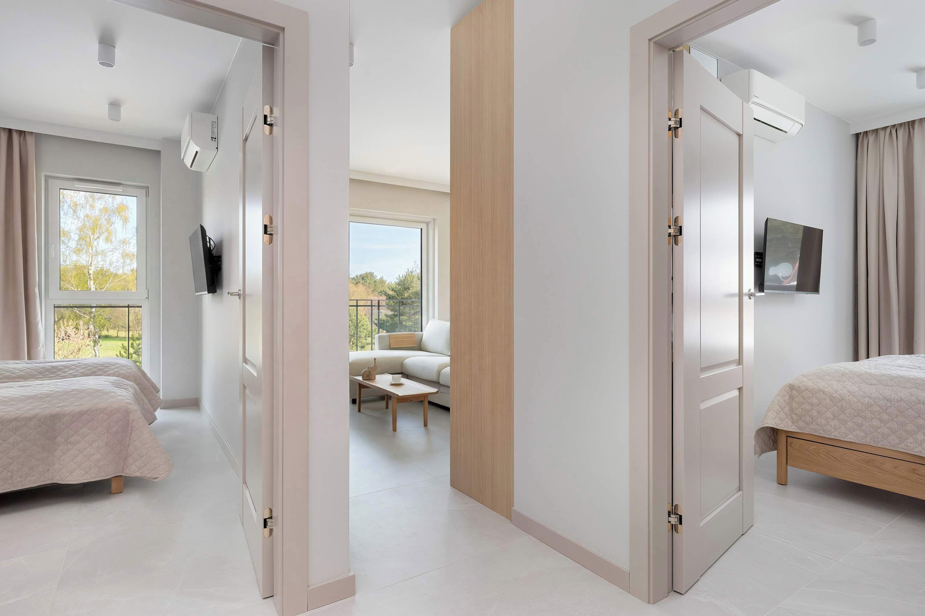 「The apartment has a prime location in the Yacht Club. I would say the most upscale area in Gdynia. The whole block is at the final stage of construction and the potential is huge. The balcony is spacious and the view is just stunning. One can tell that this is an apartment designed for rentals and rentals only. Small details such as towel hangers, shelves etc are missing in the bathroom. But the overall look of the apartment is modern and nice.」
