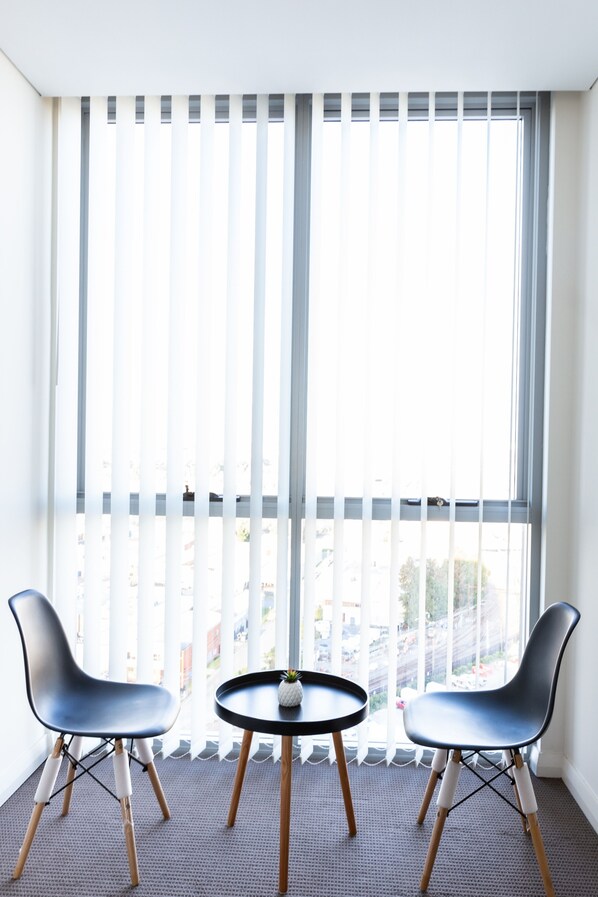Balcony: Then you wander onto the balcony. The city stretches out before you, alive yet peaceful from this height. Make sure you don’t miss the magical sunrises over Sydney city - a peaceful moment you’ll want to experience every morning.