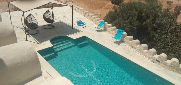 Dar Ayed Tamezret offers a quiet escape where guests can relax in the spa tub or enjoy the seasonal outdoor pool. The on-site Table d'hôtes serves both local and international dishes, while the property's garden and library provide additional spaces to unwind.