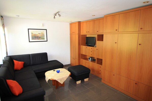 あなたは別館の近代的な施設にある居心地の良い約28㎡の1階のアパートに住んでいます。 アパートは2人に最適です。 ソファベッドに��ブルベッドを設置することもできます。 自炊��備には、調理設備付きの簡易キッチン、電子レンジ、冷蔵庫、シンク、最も一般的な家電製品が含まれます。 バスルームには、フロアレベルのシャワーとトイレが備わっています。 直接隣接するテラスエリアは、朝食や日光浴に最適です。ベッドリネンが含まれています。 タオルは1人あたり10ユーロで予約できます。