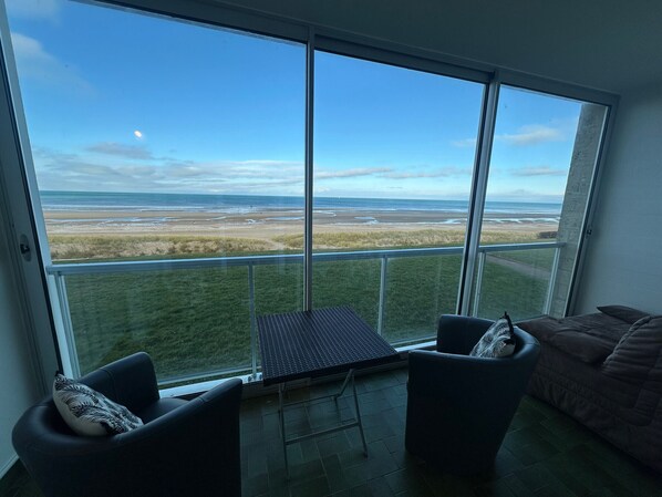 This apartment is for you if you want to have your meals facing the sea. With its loggia facing the sea, a breathtaking view of the beach of Cabourg.
