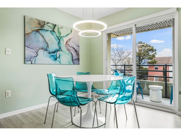 You will truly appreciate the designer furnishings, the modern lighting, deliciously comfortable beds, the Roku Smart TV's (55" in living room, 43" in the Primary Suite and 32" in the secondary bedroom) as well as the convenience of the high speed internet! The primary bedroom overlooks the pool and has a peek-a-boo view of the ocean. (Pool is open 9 am to 9pm Memorial Day Weekend thru September 27th.