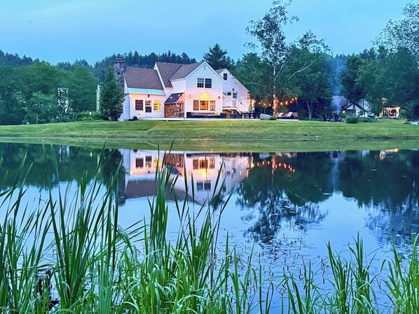 Welcome to The Villa @ Farm Road Estate - a stunning Industrial farmhouse. Our premier luxury home is situated on 32 picturesque acres overlooking our fishing pond,. This 2,600 sf home is ready for your enjoyment. It features an open concept floor plan with 4 bedrooms, 3 full bathrooms, 2 fireplaces, Hot Tub, and a recreation room. This exceptional property has 2 ponds (1 swimming / 1 fishing), swimming pool, private hiking trails, 3 mi to Mount Snow Ski and 1/2 mi to golf, close to VAST and hiking trails.