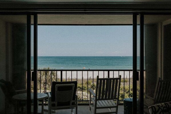 Enjoy oceanfront living in this stylish 2-bedroom, 2-bath condo on the 3rd floor of Station One, right in the heart of Wrightsville Beach. Whether you're planning a family getaway or a relaxing retreat, this spot has everything you need—pool, tennis courts, basketball, and unbeatable beach access. Indulge in dolphin sightings from your private covered balcony, where you can unwind and soak in the coastal serenity. The master bedroom has ocean views and an en-suite bathroom.