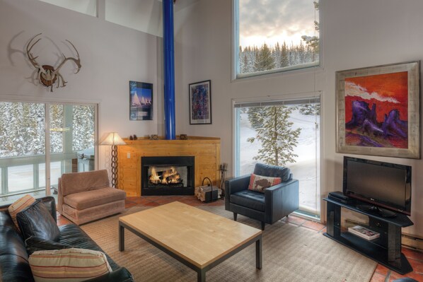 TV, fireplace - Ski in/out home w/fireplace, hot tub, sauna & gorgeous views - Retro Mountain Retreat (Big Sky)