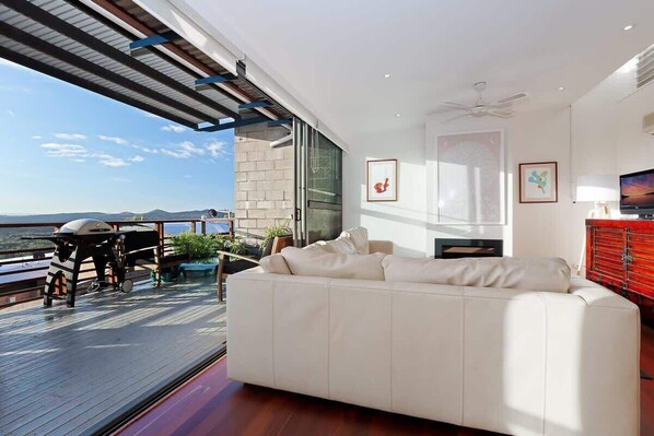 Wake up to stunning panoramic views of the hinterland and One Mile Beach from the front balcony, and catch sight of the ocean and whales from the back balcony (June to October). This is the perfect spot for your morning coffee or an evening drink while soaking in the beauty of nature.