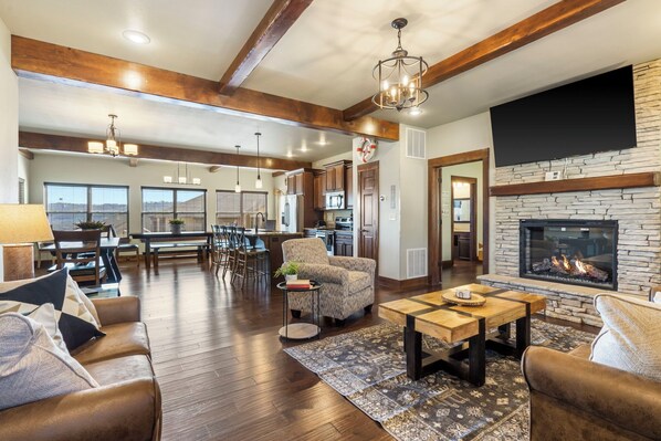 Get ready to make lifelong memories at our beautiful lodge on Indian Point! Whether you’re seeking the thrills of Silver Dollar City (just two miles away) or a laid-back day by the lake, our 6-bedroom, 5-bath retreat has everything you need for the perfect Branson getaway. Step out into the outdoor pool just behind your home, gather around the cozy fireplace, and enjoy the sun-sparkled waters of Table Rock Lake—only steps from your door!