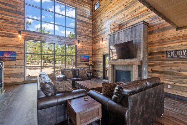 Perfect for 2–5 families (sleeps up to 15), this cabin offers multiple gathering spaces inside and out—ideal for creating lasting memories in every season.