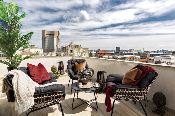 Experience an incredible view of Bucharest while sipping your morning coffee from your personal terrace! Located right in the heart of the city, a couple of minutes walking distance until the Old City and the House of Parliament, our home will give you a unique & unforgettable stay in Bucharest.