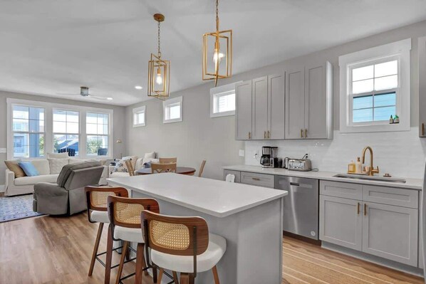 A starter kit of one roll of toilet paper per bathroom, one roll of paper towels, a trash bag, and dish soap. We also supply laundered bed linens, comforters, and 1 bathing towel and wash cloth per person. We do not supply any beach gear or beach towel. We have great rental companies on the island we would be more than happy to share the info with you. We also do not supply laundry detergent, body soap or shampoo/conditioner as we find everyone has their own preferences for these =) Please review our house rules prior to your stay