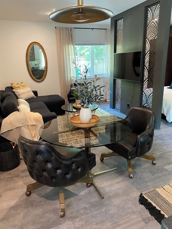Step into this charming studio, nestled near Bidwell Park and downtown Chico. With a private entrance and alley parking, you'll feel right at home. Enjoy the fully equipped kitchen, stocked with everything you need to whip up a meal.