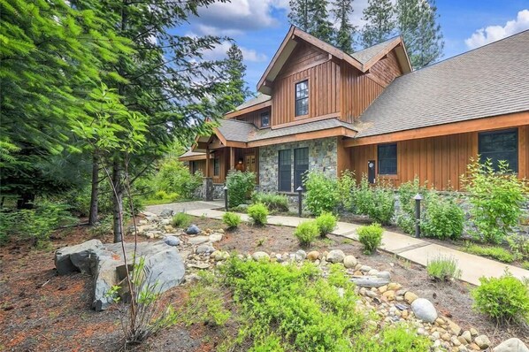 This 3,503 square foot home tucked away on Larkspur Loop near the golf course was built and furnished with comfort in mind. With more than enough for everyone, this spacious mountain home is the perfect getaway for your family and friends. Sleeps: 16Bedding: 4 King, 2 Full over Full Bunkbed. This home incudes many upscale features. The downstairs living room is the perfect place to entertain and enjoy the stone fireplace and scenery. Large windows offer forest views and invite the outdoors in. Gather around the TV to catch the game or watch a movie. The adjacent dining area can seat up to 12 for wonderful meals with family and friends and the open floor plan provides an easy flow to the living room and kitchen. The large, gourmet kitchen offers extra-large granite countertop space in addition to an island that can seat up to 5. The kitchen comes fully stocked and has 2 sinks, gas stove and abundant storage space. This living area has access to the outdoors and two separate patio areas. The covered patio has a gas BBQ and dining table that seats 6. After dinner, mosey over to the firepit, settle in the comfortable seating and stargaze or roast marshmallows .Exit the living room to the private patio on the other side of the house and enjoy the hot tub and forest view; always a fantastic way to end any night year- round! Home Features 5 Bedrooms and 4 Bathrooms This home is 3,541 Sq. Ft.