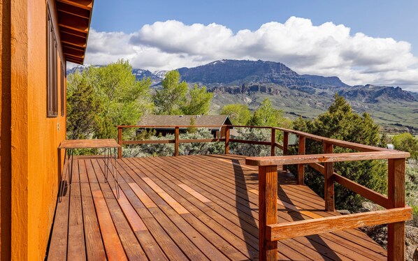 Welcome to Loren's Lookout- this charming cabin is located in the picturesque Wapiti Valley. The location is ideally situated between the historic town of Cody, WY and the East entrance of Yellowstone National Park. This cozy family cabin has everything you'll need for a comfortable stay- you can even bring your 4-legged family members- Loren's Lookout is dog friendly! Frequent visitors of the area include mule and white tail deer, moose, the occasional fox or coyote, rabbits, eagles and bison!