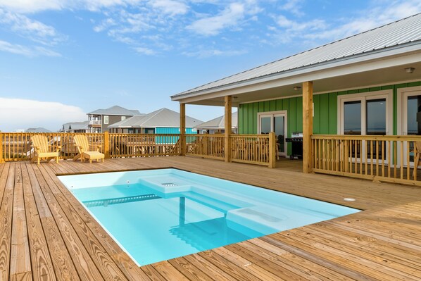 Experience beachfront bliss at Beautiful C's, a stunning 5-bedroom, 5-bathroom bayfront home on the Mississippi Sound. This pet-friendly retreat comfortably sleeps up to 20 guests, making it ideal for family gatherings or group getaways. Featuring a private heated saltwater pool, a child-friendly private beach on the Sound, and Gulf views, Beautiful C's offers the ultimate Dauphin Island vacation.