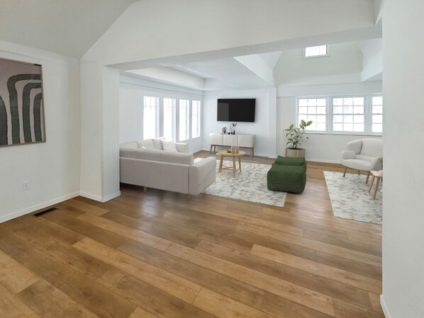 Unwind in the spacious living room, designed for relaxation and connection. Sink into plush furnishings and enjoy entertainment on the smart TV. High-speed Wi-Fi is available throughout the home, keeping you connected.
