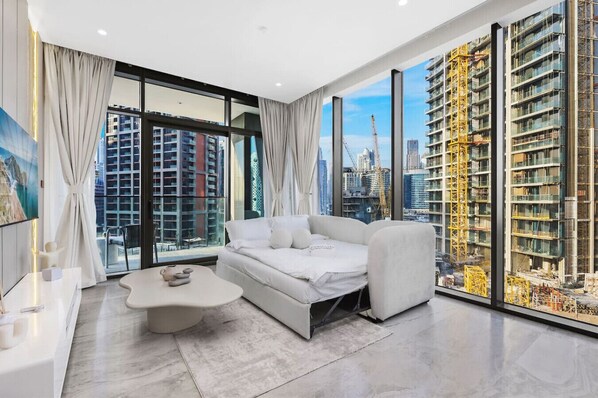 Stay in a stylish 1BR apartment in Business Bay with direct Burj Khalifa views. Enjoy modern design, large windows with natural light, and easy access to Dubai Mall, Downtown, and Canal Walk. Perfect for couples, families, or business guests seeking comfort, convenience, and a prime central Dubai location.