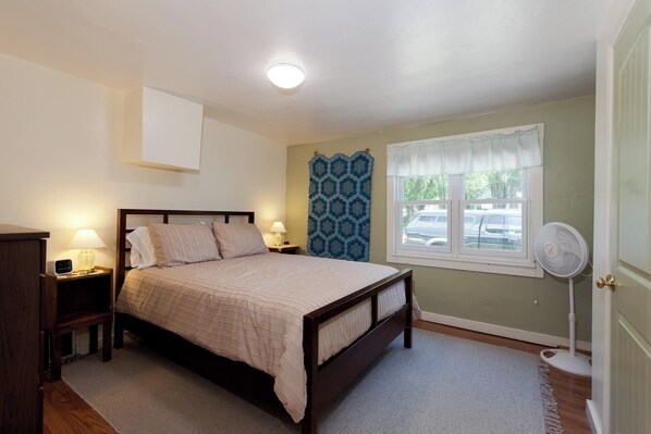 The home features great outdoor space including a front porch and large fenced backyard with seating and a BBQ grill. There is also off street parking for 2 cars. The home has Roku and fast WIFI and the TV is a smart TV so you can access your favorite streaming services (Netflix, Disney etc.). The Master bedroom has an AC Unit for those few days of summer when opening the windows at night is not quite enough to cool the home down and there is also portable evaporative cooler on wheels that can be easily moved any room in the house. There are also portable fans in the home.