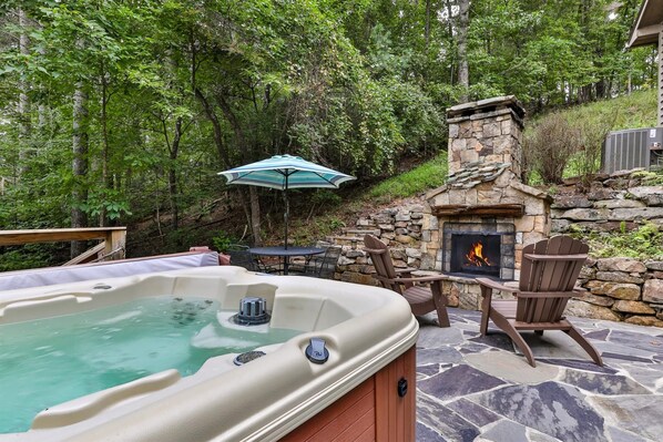 エリジェイにあるキッチンと暖炉を備えたキャビン