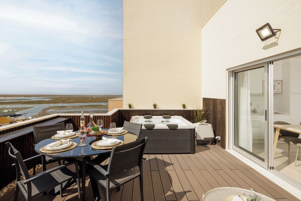 Apartment with a hot tub, 10-minute walk to Faro Marina