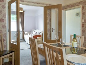 Step inside and Say Shells has a lovely and welcoming feel to it. The cosy sitting room is at the front of the property and offers a large sofa and a selection of armchairs; here you can enjoy a night in front of the fire watching your favourite holiday movie. French doors open into a spacious dining room which offers plenty of seating for four. Look through the internal window and see how bright and airy the newly installed kitchen is. Retreat upstairs and two well-appointed bedrooms offer a double and super kingsize options. The house bathroom has real character with a sloping ceiling.