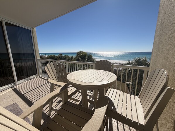 Inside this little piece of paradise, feel right at home in the open-concept living area, flooded with natural light and bursting with charming coastal decor. Stream all your favorite shows on the large smart TV, play board games, or whip up delicious home-cooked meals in the well-appointed kitchen. As the day draws to an end, relax on the expansive balcony with a glass of wine, allowing the soothing melody of the waves to serenade you as the sun sets. Central air conditioning and a private washer/dryer round out the list of this home's awesome perks.