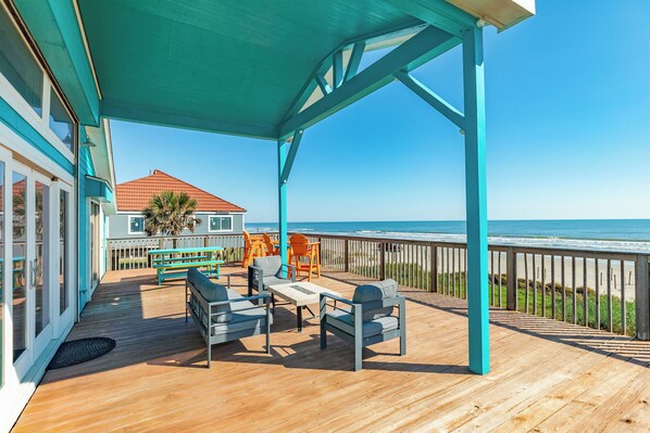Terrace/patio - Beachfront, Pet Friendly, Deep Covered Deck & Vacay Ready! (Jamaica Beach)