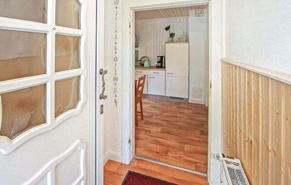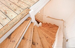 The approx. 55 square metre, tastefully furnished, centrally heated non-smoking apartment with separate entrance has a living room (upholstered suite, flat-screen TV, radio, wood-burning stove incl. wood), a large kitchen with dining area (electric cooker with oven, fridge with freezer, dishwasher, various small kitchen appliances), a bedroom (double bed), a bathroom (shower, WC, switchable electric heating) and a small hallway. A further bedroom (1 single bed) can be reached via a staircase (NO CHILDREN'S SAFETY!) and there is also a furnished, covered terrace with barbecue, car park, bicycle storage facilities and, by arrangement, a boat (for a fee).