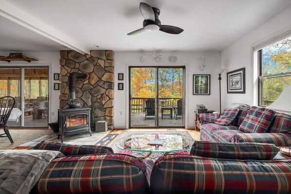 - Wood burning stove to stay cozy on chilly nights