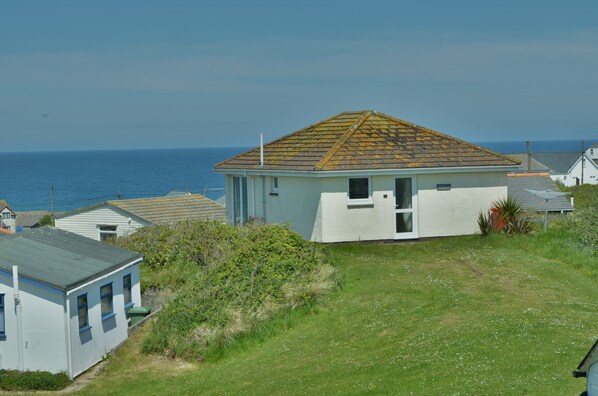 Living Space - Two comfy sofas, dining table and chairs, TV and panoramic views of St Ives Bay. Kitchen - Well equipped with an electric oven and hob, fridge, microwave and dishwasher (washing machine is located in the shower room). Bedroom 1 - Double bed, hanging space, chest of drawers, TV and white window shutters. Bedroom 2 - Double bed, hanging space, chest of drawers and white window shutters. Bedroom 3 - Full size bunk beds, storage area and chest of drawers. Shower Room - Shower cubicle, heated towel rail, underfloor heating and WC. Washing machine Outside - An enclosed, decked, balcony with a table and chairs, the balcony enjoys great views over the Bay. Outside the front door is another seat to catch the morning sun at coffee time, plus a picnic bench to the front of the chalet. Only a few minutes from the beach and shop with parking beside the back door.