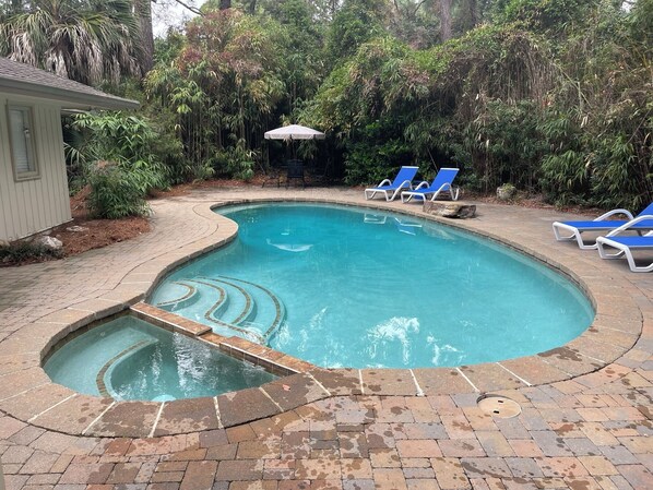Family-friendly vacation home with an outdoor pool and a hot tub